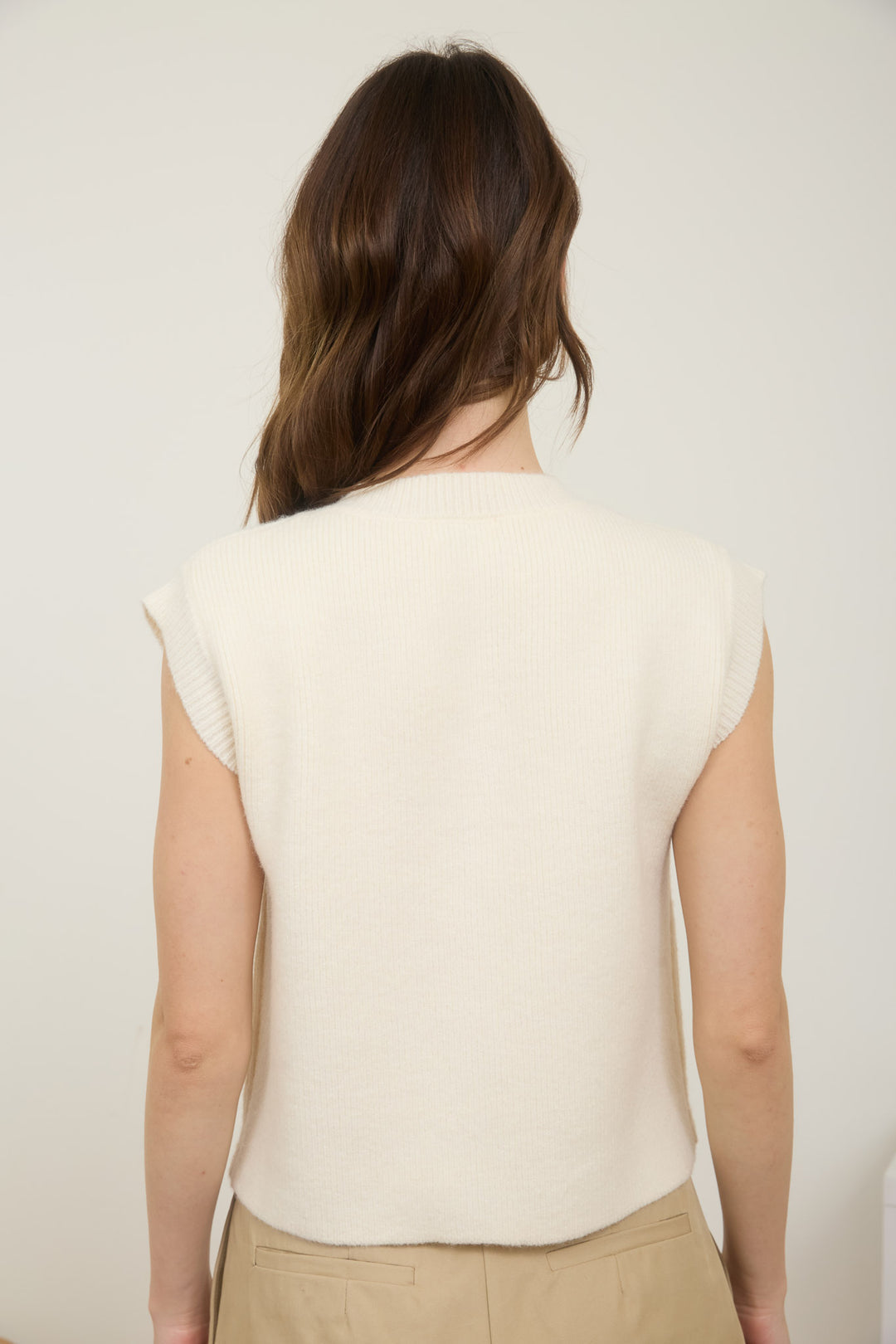 Chaleco tejido de alta calidad con botones dorados que aportan un toque sofisticado y elegante. Su diseño estructurado y suave textura knit lo convierten en una pieza clave para elevar cualquier outfit. Cuenta con bolsillos frontales decorativos y un corte moderno que estiliza la figura. Perfecto para combinar con pantalón de vestir, falda o jeans premium para un look chic y versátil.